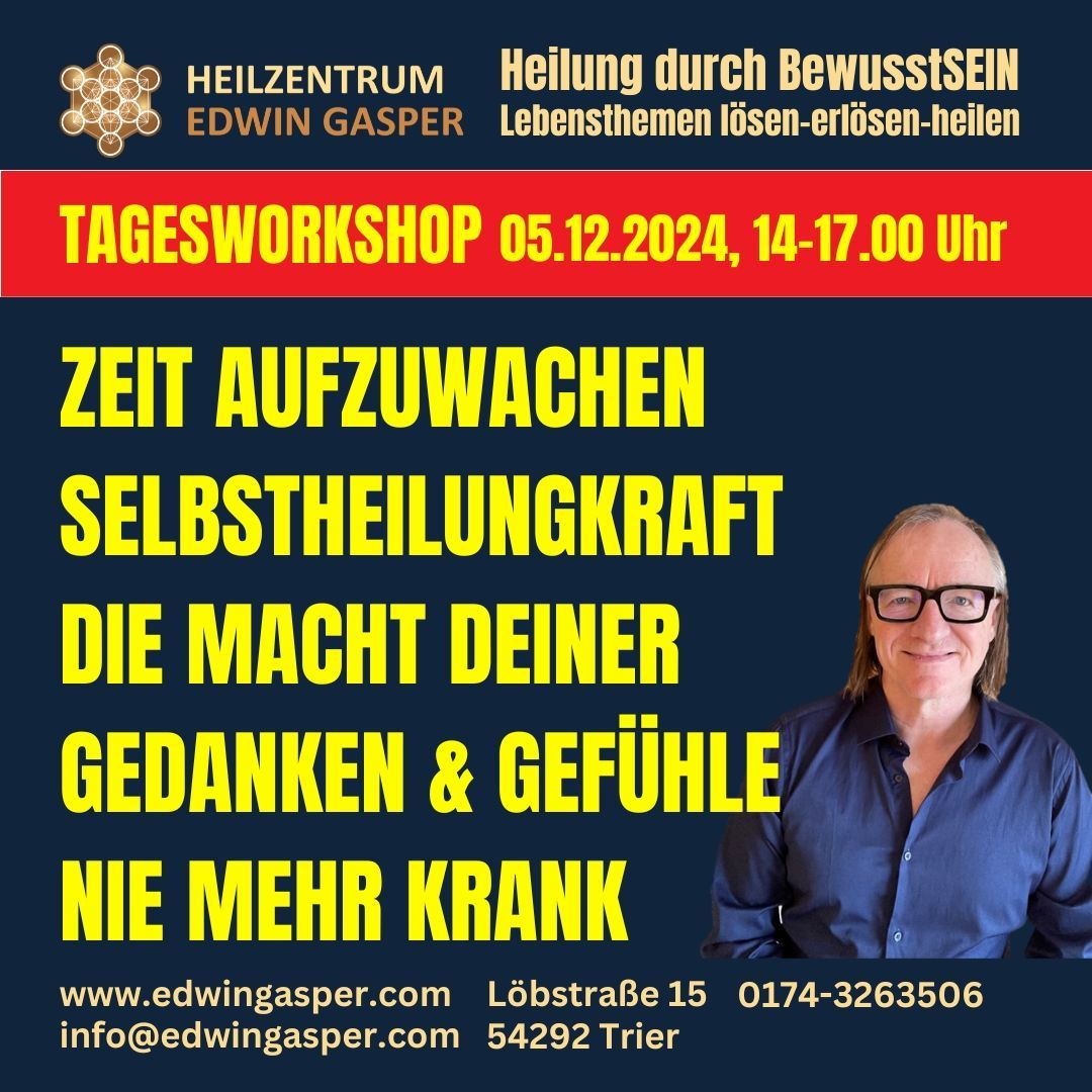 In diesem Workshop geht es um Deine ganzheitliche Heilung mit Atemtechnik, Deine Lebensgeschichte bis Jetzt, Deine LebensRückschau, „DIE MACHT DEINER GEDANKEN & Gefühle und Aktivierung Deiner Selbstheilungskraft durch BEWUSSTSEIN!